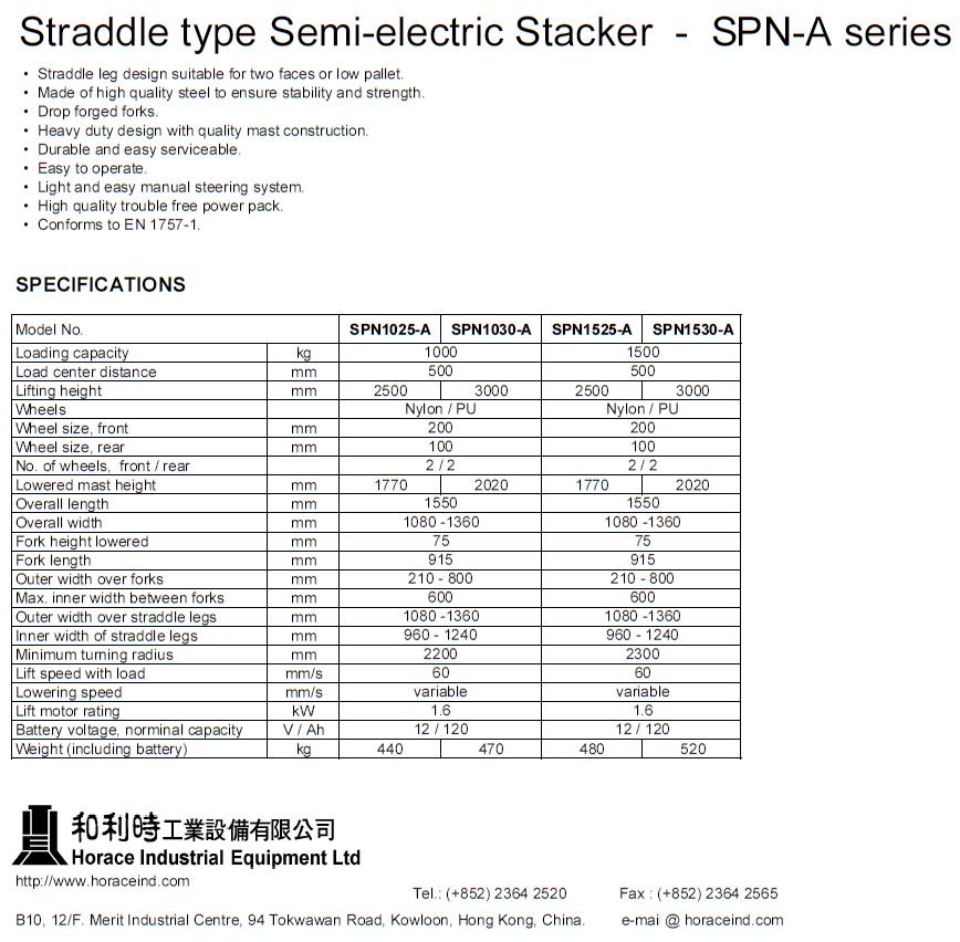 Product Name : | Straddle type Semi-electric Stacker |