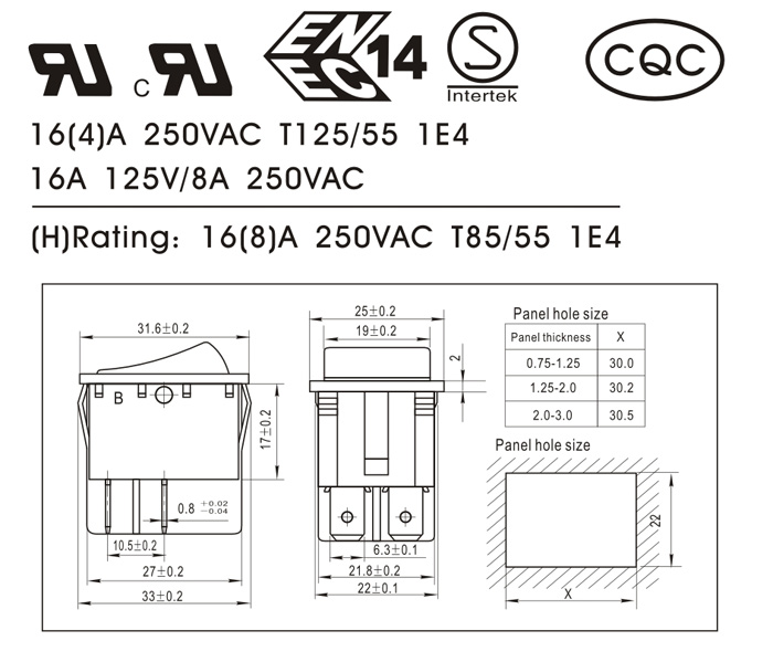 (H): 16(8)A 250VAC T85/55 1E4